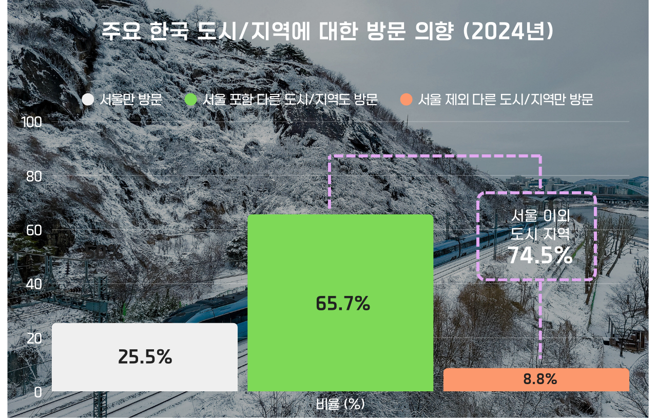 대전을 모르는 외국인에게 대전의 교통이나 맛집 정보는 필요조차 없다. 하지만 이 데이터는 역설적으로 대전의 기회를 시사한다. 불편함 1위인 '교통정보'는 단순히 서울 시내 이동만을 의미하지 않는다. 서울을 벗어나 한국의 로컬을 경험하고 싶은 욕망과 이를 실행에 옮길 구체적인 방법 사이의 간극을 의미한다. 대전은 이 지점에서 가장 강력한 무기를 보유하고 있다. KTX를 이용하면 서울에서 단 1시간 만에 도달할 수 있는 '심리적 인접권'에 위치한다. 2024년 기준 한국의 다른 지역 방문 의향이 74.5%로 전년 대비 3.7% 상승하며 지속적인 증가세를 보이는 트렌드는 대전에 분명한 호재다.