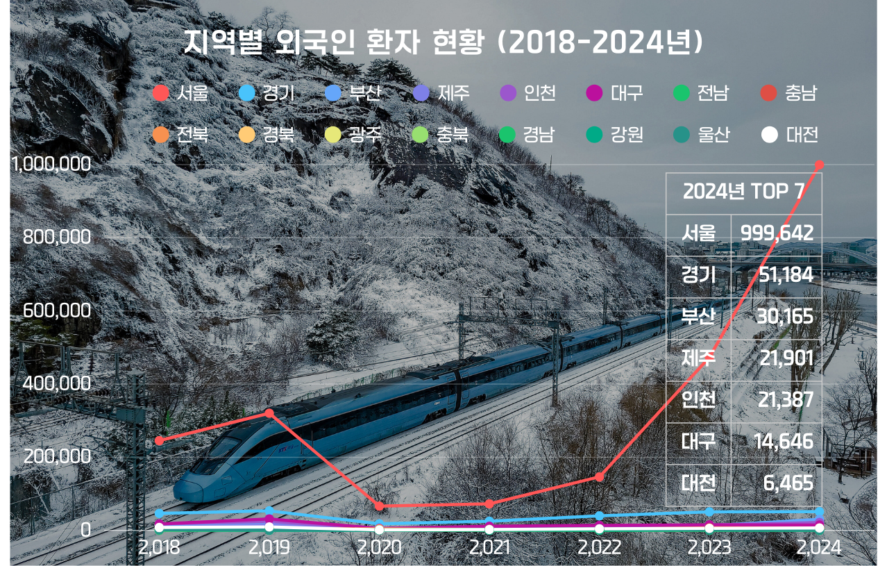 '한국관광데이터랩'의 지역별 외국인 환자 현황 데이터에 따르면, 2019년 49만 명이었던 외국인 환자 수는 팬데믹 시기인 2020년 17만 명으로 급감했으나, 2024년에는 117만 명을 기록하며 폭발적인 상승세를 보였다. 문제는 이 수요의 85%에 달하는 99만 명이 서울로 집중되고 있다는 점이다. 대전의 외국인 환자 수는 2024년 약 6,400명 수준으로 서울에 비하면 미미하게 보인다. 하지만 대전이 가진 '연구-과학 도시'의 전문적 이미지와 서울보다는 한적하고, 전국에서도 손꼽히는 도시적 편의를 갖춘 환경은 장기 체류가 필요한 의료관광객에게 강력한 메리트가 된다.