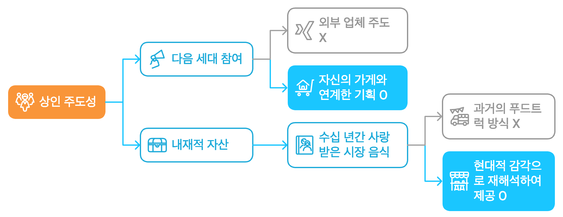 데이터를 통해 '야시장'이라는 기회의 방향성을 확인했다면, 이제 '어떻게' 실행할 것인지에 대한 구체적인 고민이 필요하다. 단순히 사람을 모으는 것을 넘어 시장의 지속가능성으로 이어지려면, 우리는 과거의 경험에서 중요한 교훈을 얻어야 한다. 성공적인 경험 설계의 핵심은 '상인 주도성' 이다.