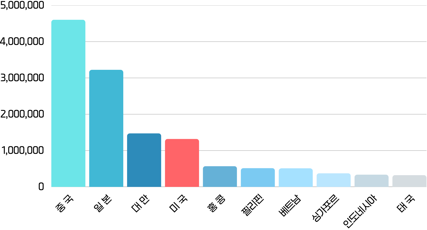 넷플릭스의 총 가입자는 전 세계적으로 약 2억 8,272만 명에 달한다. 이는 명실상부한 글로벌 플랫폼이라는 뜻이며, 시청자들의 취향과 여행지를 결정하는 데에도 막대한 영향을 미친다. 특히 한국을 찾는 주요 방문객(상위 10개국)의 국적을 살펴보면, 대부분이 아시아권 국가임을 알 수 있다(미국 제외). 이는 실제로 아시아 지역 소비자들이 K-콘텐츠를 가장 적극적으로 즐기고, 동시에 오프라인 여행의 목적지로 한국을 선택할 가능성이 높다는 점을 시사한다.