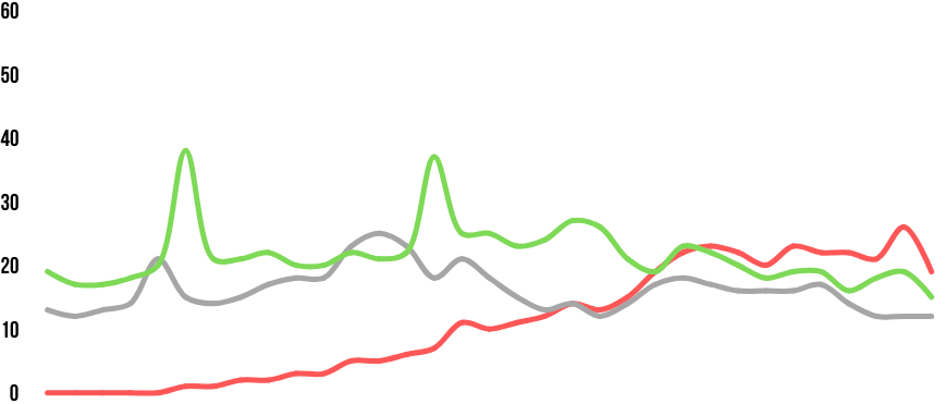 *네이버에서 특정 검색어의 검색량을 100을 기준으로 상대적으로 나타낸 수치